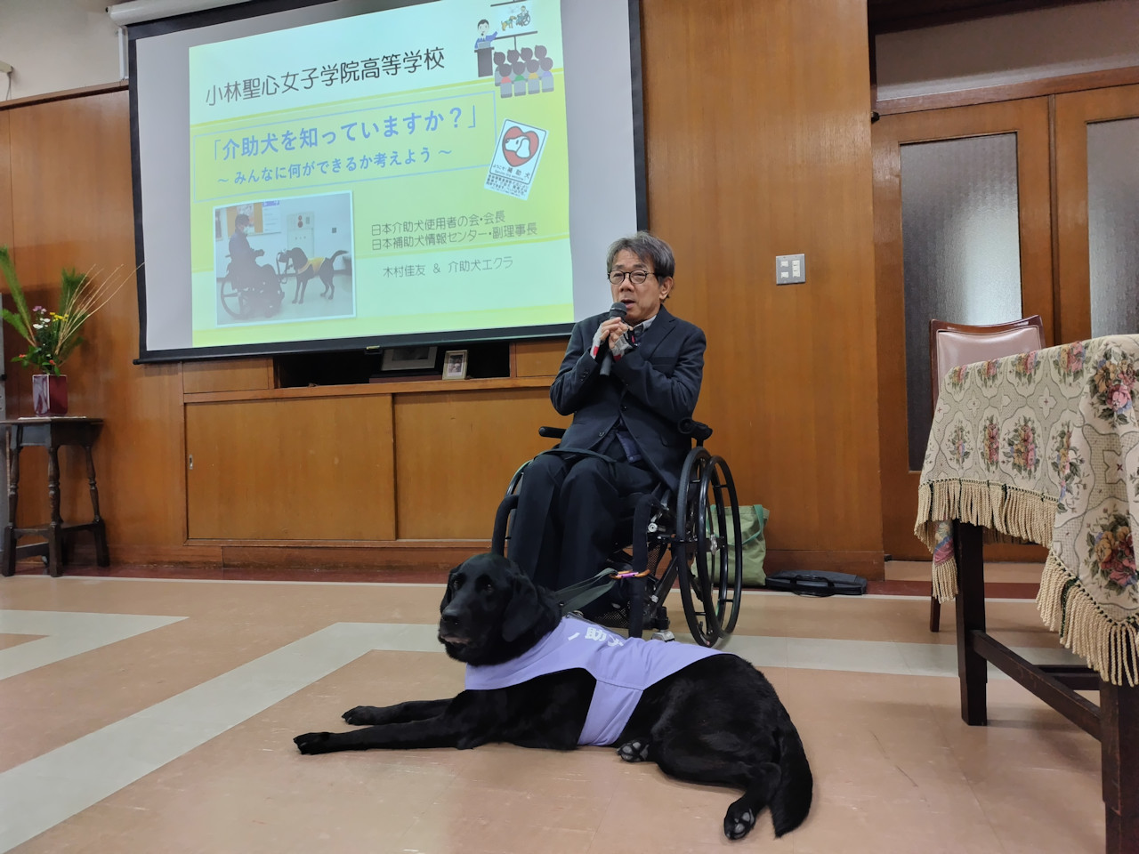 2026年1月15日(木) 15:25~16:15 イベント名:福祉講演会 主催: 小林聖心女子学院高等学校 場所: 小林聖心女子学院高等学校(兵庫県宝塚市) 対象: 高校1年生 講師: 当会副理事長・木村佳友&介助犬エクラ テーマ: 介助犬を知っていますか? ~みんなに何ができるか考えよう~ 備考: 一般参加不可